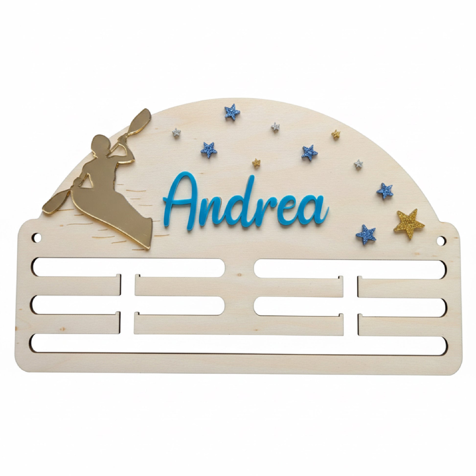 - ✨ PERSONALIZACIÓN: El nombre y la figura están fabricados en acrílico de color a elegir, transformando un simple colgador en una pieza de exhibición personal y motivacional. También puedes elegir la combinación de las estrellas. Un regalo perfecto y único para cualquier atleta.