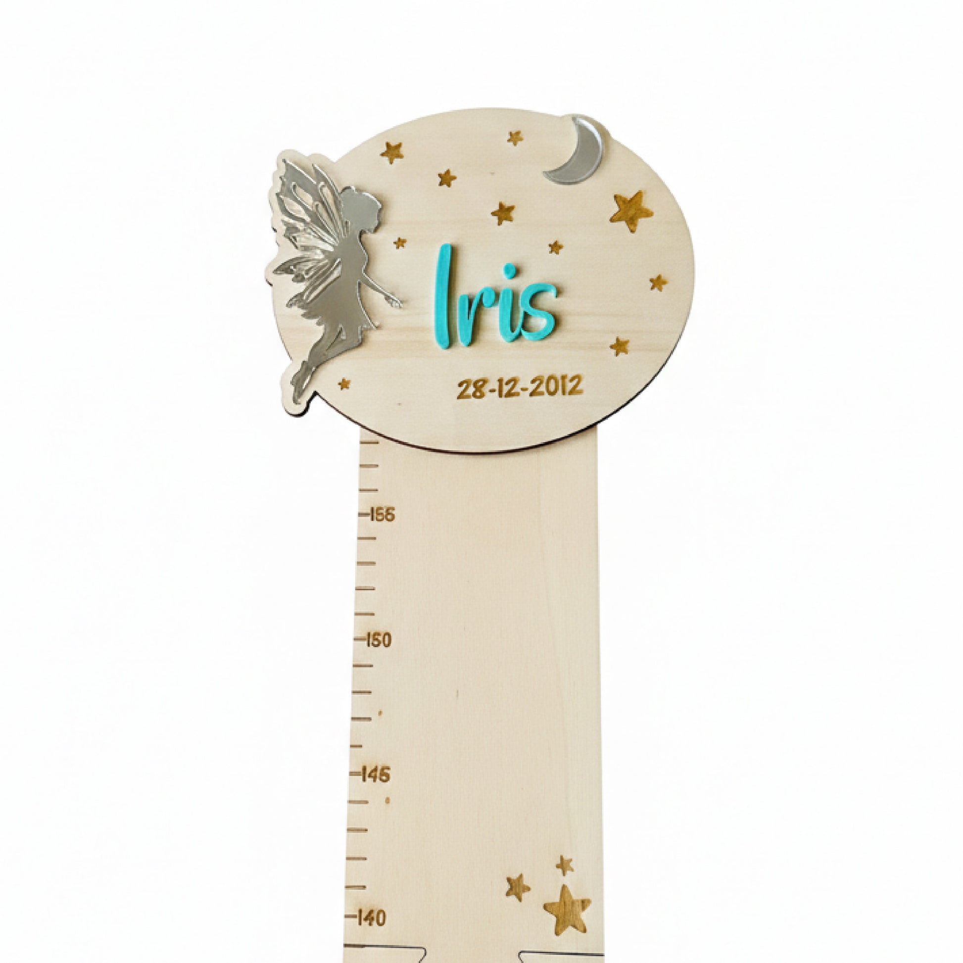 Personaliza el nombre y el Hada/Luna en acrílico del color que elijas. Puedes añadir la fecha de nacimiento o una frase. Se incluye cinta 3M para su instalación.